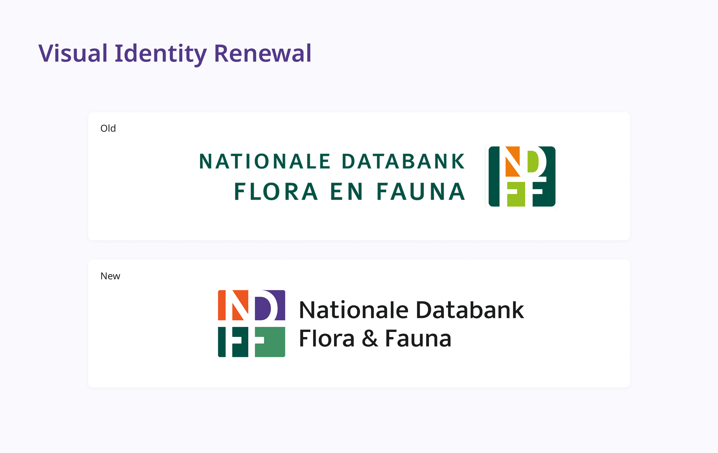 Alongside the platform redesign, the visual identity was refreshed to better reflect NDFF’s role as a reliable, future-proof data platform. The renewed identity balances clarity and neutrality with subtle references to nature, ensuring it supports the product without overpowering the content.